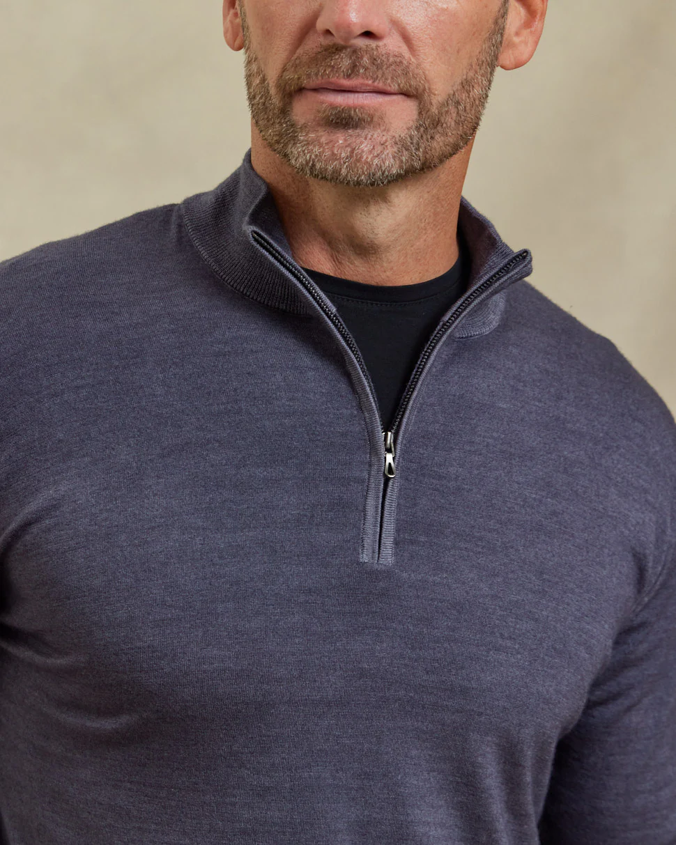 The Archer - LS Lightweight MERINOmax 1/4 Zip Sweater - Steel