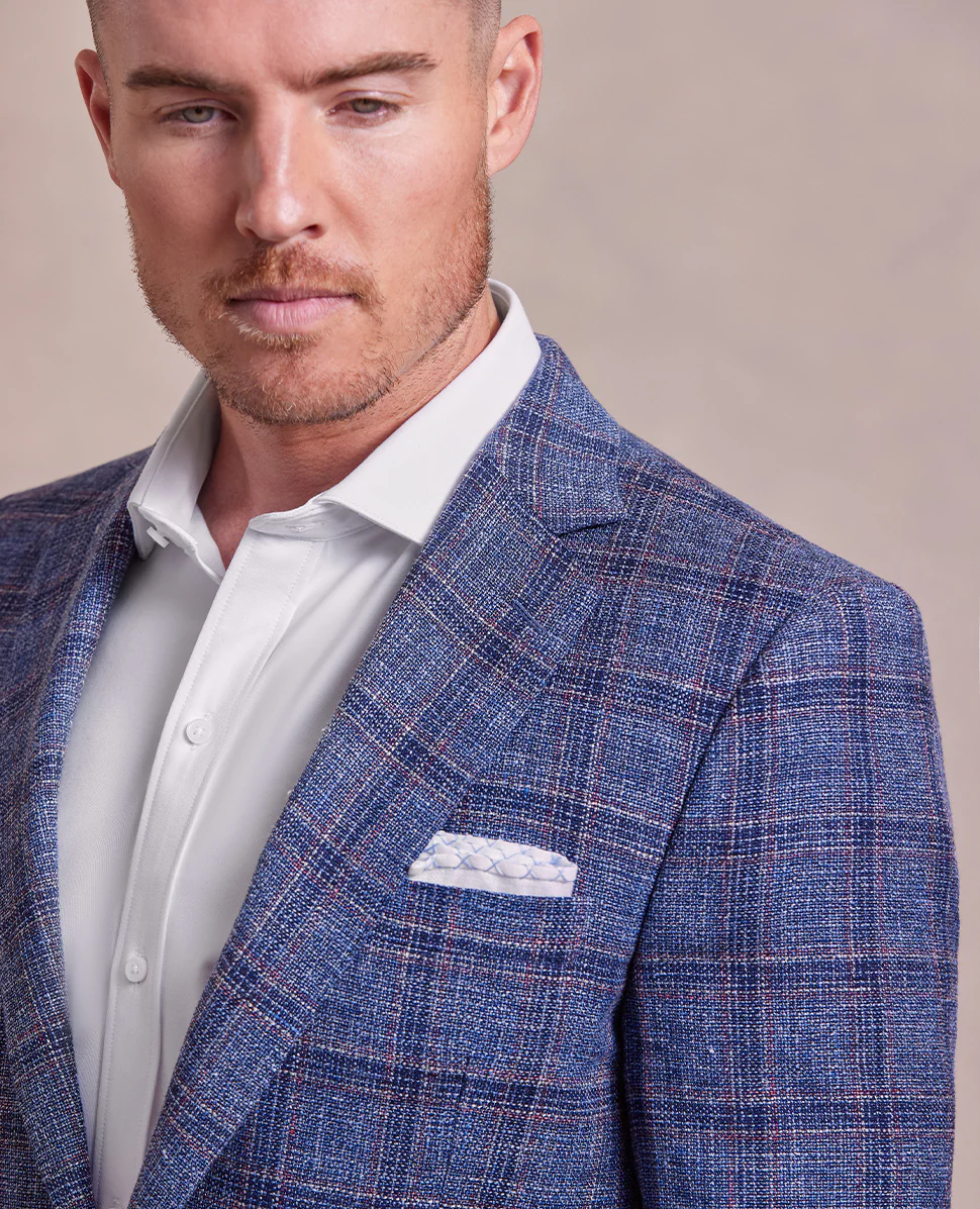 The Cameron - Linen Wool Hopsack Check Jacket- Blue/Red
