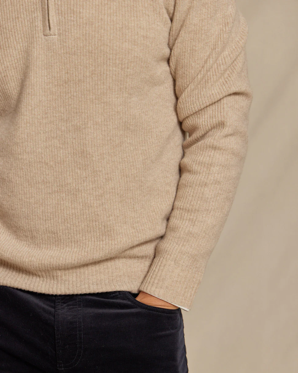 The Kayce - Cashmere 1/4 Zip Sweater - Oatmeal Heather