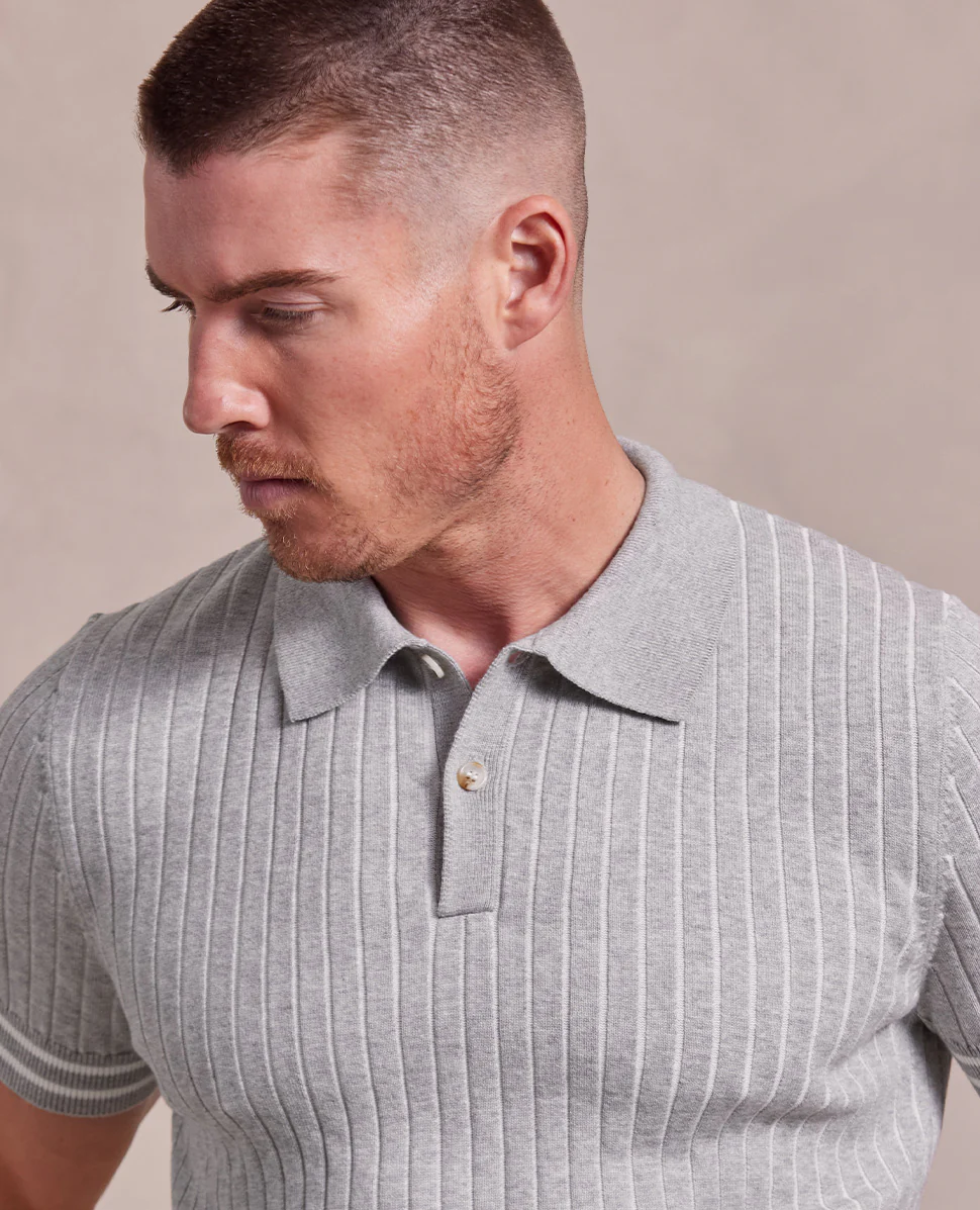 The Tristan - Cashmere Cable Knit SS Polo - Grey/Ecru