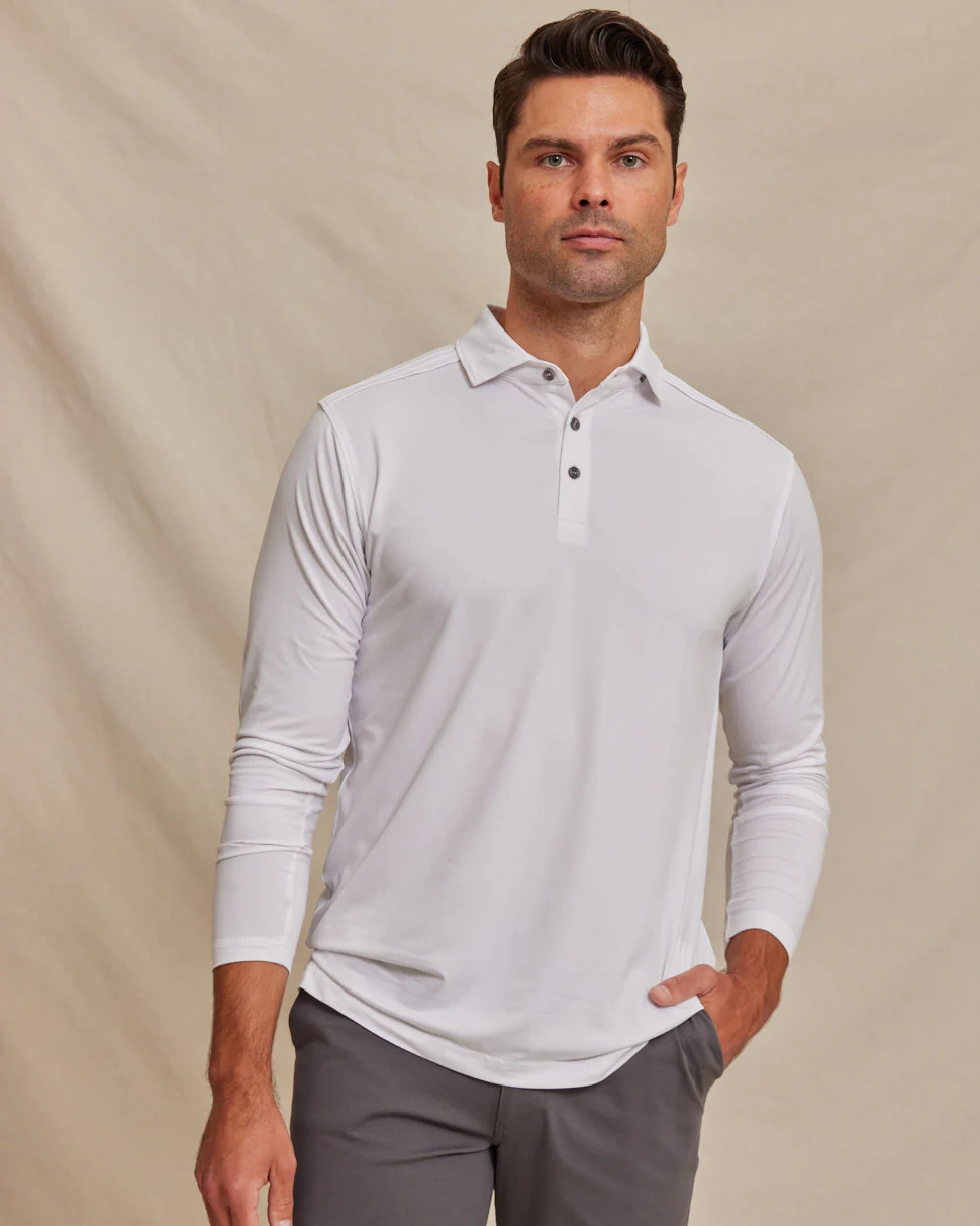 The Voyager - High Performance Long Sleeve Polo is crafted from our Neoknit proprietary technological fabric, renowned for its shape retention, rapid moisture-wicking capabilities, four-way stretch, breathability, and wrinkle resistance. Maintain a flawless appearance with the discreet button-down design, ensuring a perfectly positioned collar.