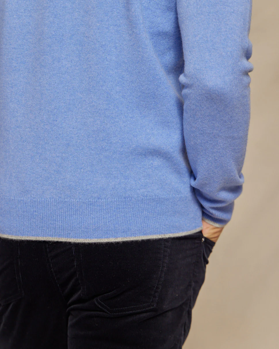 The Walker - Cashmere Crew Neck Sweater w/Tipping - Lt. Blue / Grey